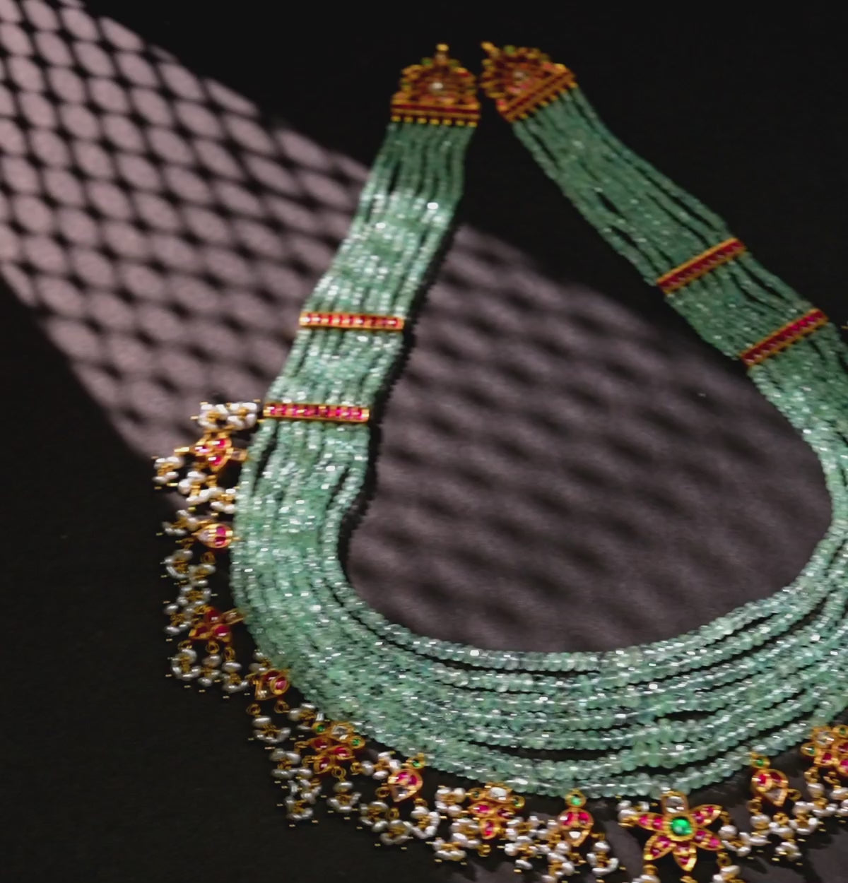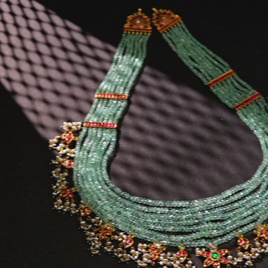 Understated Emerald Kundan Pearl Side Pieces Necklace