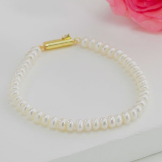 The White Button Freshwater Pearl Bracelet features a single row of delicate 4-5MM button-shaped pearls in a luminous white hue. Crafted from AA-grade freshwater cultured pearls, each pearl is selected for its smooth finish and radiant glow. Measuring 7 inches, this bracelet offers a comfortable and elegant fit, making it perfect for daily wear or special occasions. Backed by our Life Long Guarantee on Pearls, it’s an ideal accessory for weddings, festive celebrations, professional gatherings, or adding a touch of classic elegance to everyday outfits.