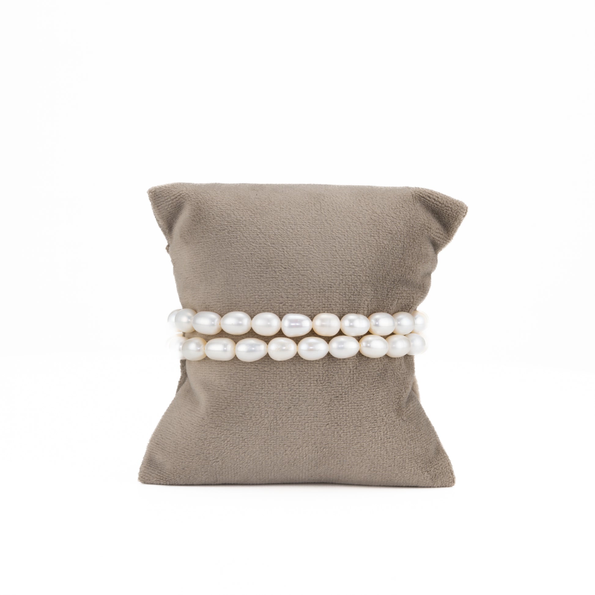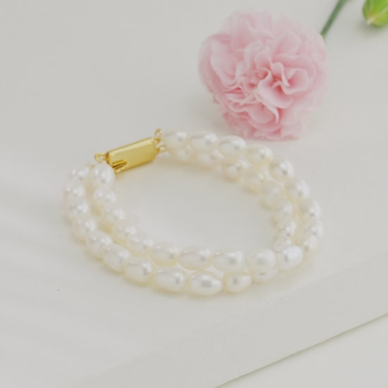 Stunning piece that embodies sophistication and grace. Handcrafted with freshwater cultured pearls, this bracelet features two rows of beautifully matched white drop-shaped pearls measuring 8–9 mm each. Their soft luster and natural sheen create a classic look that complements any outfit, from casual chic to formal elegance.