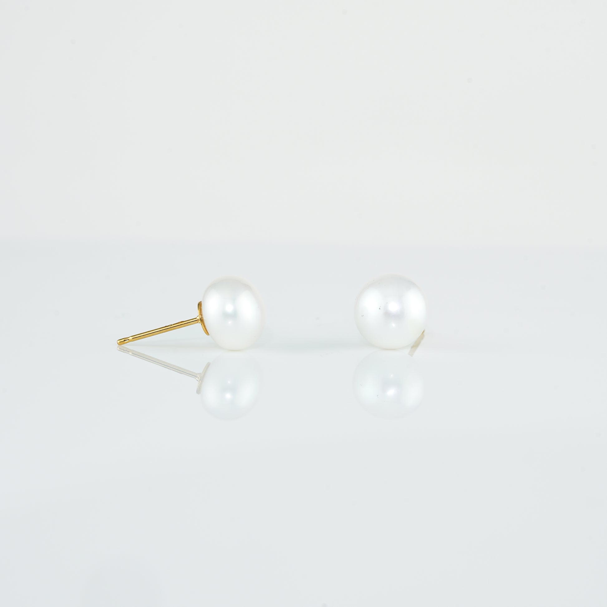 Crafted with premium Freshwater Cultured Pearls, these elegant stud earrings feature lustrous white button-shaped pearls sized 8–9MM. With a Grade A quality rating, each pearl radiates natural beauty and timeless appeal. The smooth surface and subtle sheen highlight the refined craftsmanship, while the sturdy setting ensures lasting wear. Backed by our Life Long Guarantee on Pearls, they are a perfect blend of sophistication and durability. Ideal for weddings, festive occasions, and formal events, these pearl studs also pair beautifully with everyday attire, adding a touch of elegance to both traditional and modern outfits.
