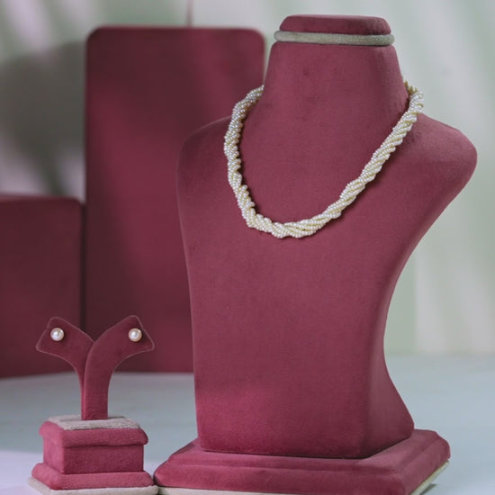 Add a touch of intricate charm with this Freshwater Cultured Pearl Necklace , featuring five elegant rows of AAA-quality seed pearls in a delicate 1–2 mm size. With a pure white hue, this 18-inch necklace weighs approximately 33.7 grams, offering a lightweight yet luxurious feel. Backed by a life-long guarantee, it promises lasting beauty and craftsmanship. Perfect for layering or wearing solo, this piece enhances both traditional and modern looks—ideal for festive occasions, ethnic celebrations, or as a graceful accent to formal wear.