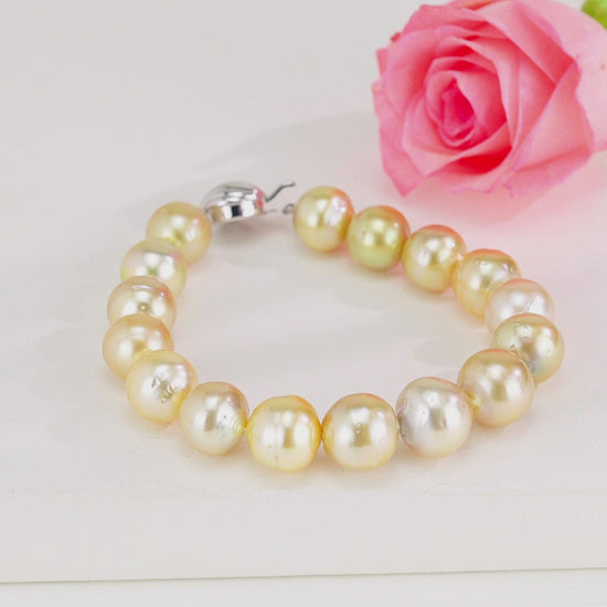12.0-13.0mm Round Golden South Sea Pearl Bracelet - AA Quality