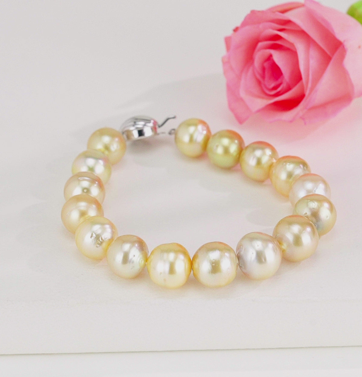 Elevate your elegance with this stunning 12.0–13.0mm Round Golden South Sea Pearl Bracelet, featuring lustrous, high-quality AA-grade pearls. Each pearl is perfectly round and displays a rich golden hue, radiating timeless sophistication. Weighing approximately 247.75 carats, this single-row bracelet measures 7 inches, offering a graceful fit for any wrist. Expertly crafted from premium saltwater-cultured South Sea pearls, it ensures lasting beauty and durability. Every bracelet comes with a lifelong guarantee on pearls, highlighting its superior quality and authenticity. Ideal for special occasions or daily elegance, this bracelet combines luxury, craftsmanship, and classic style in one exquisite piece.