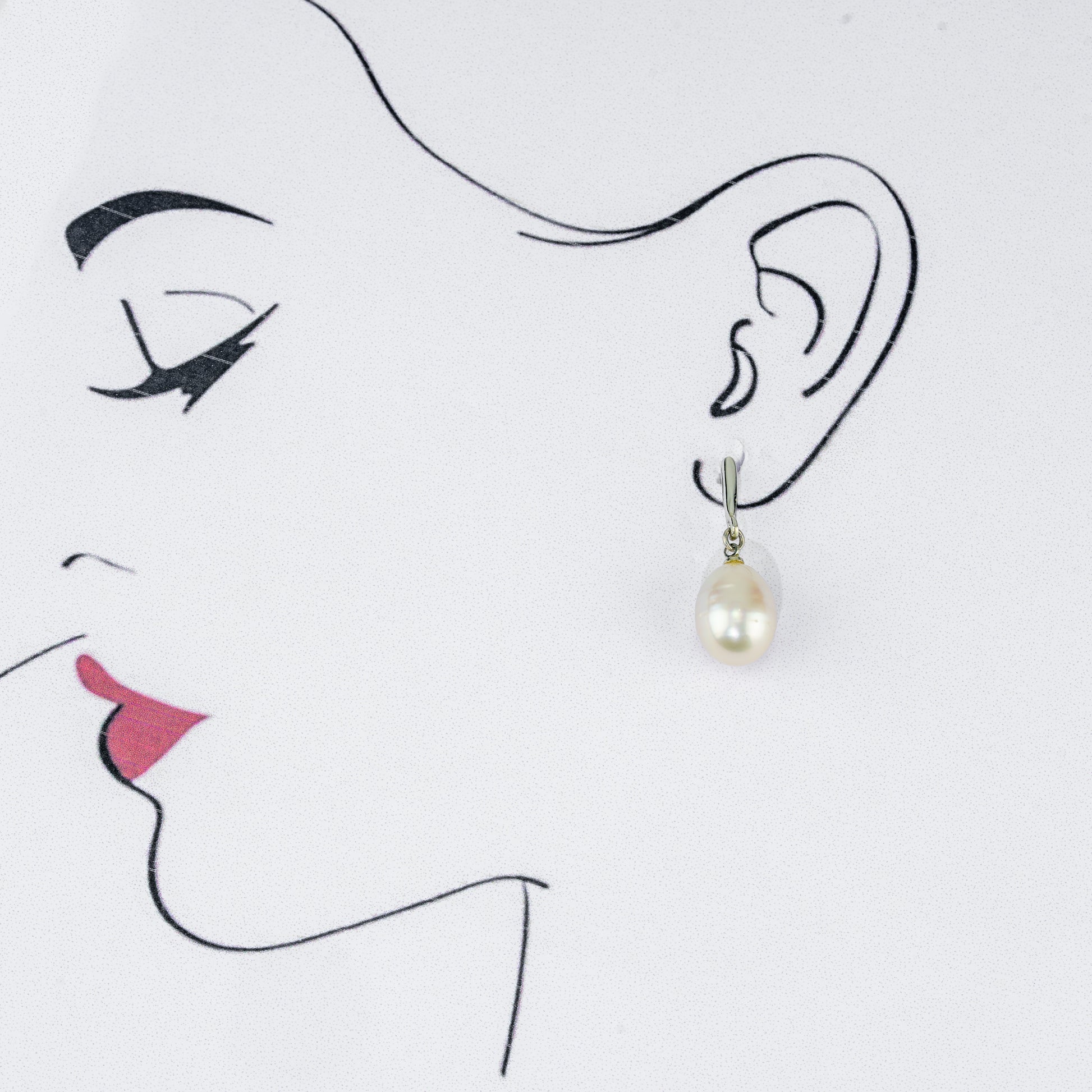 14.0-15.0mm White Drop South Sea Pearl Hanging Earrings