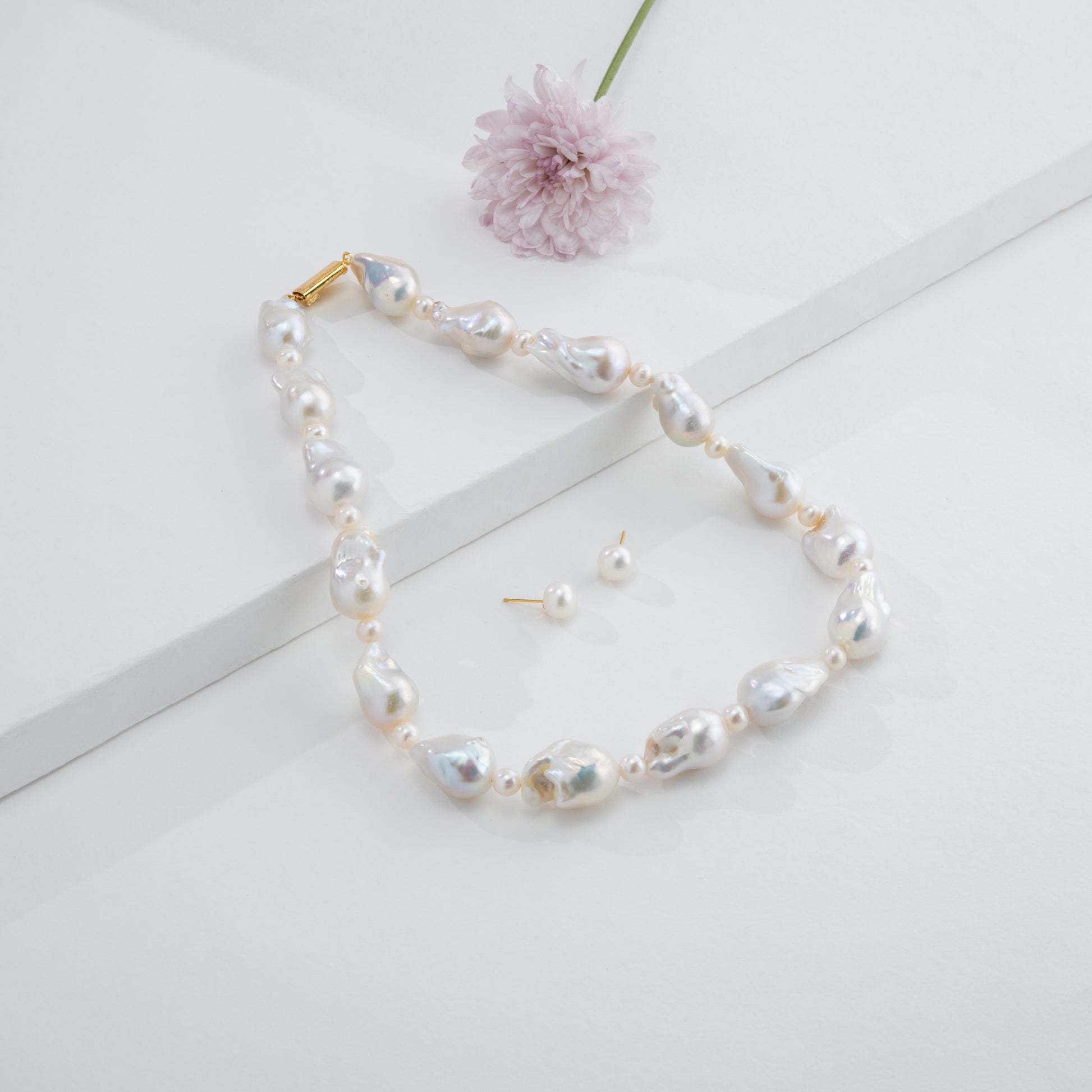 23.0-24.0mm White Mix Baroque Freshwater Pearl Necklace Set - AA Quality