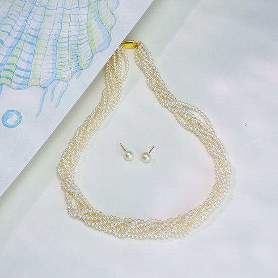 3.0-4.0mm White Round Freshwater Pearl Necklace Set - AAA Quality