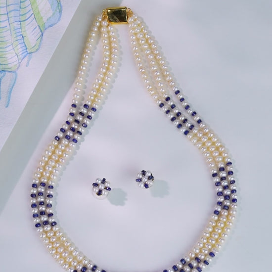 Natural Blue Sapphire And 5.0-6.0mm Button Freshwater Pearl Necklace Set - AA Quality