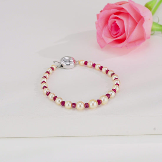 5.0-6.0mm Natural Ruby and Golden Akoya Saltwater Pearl Bracelet - AA Quality
