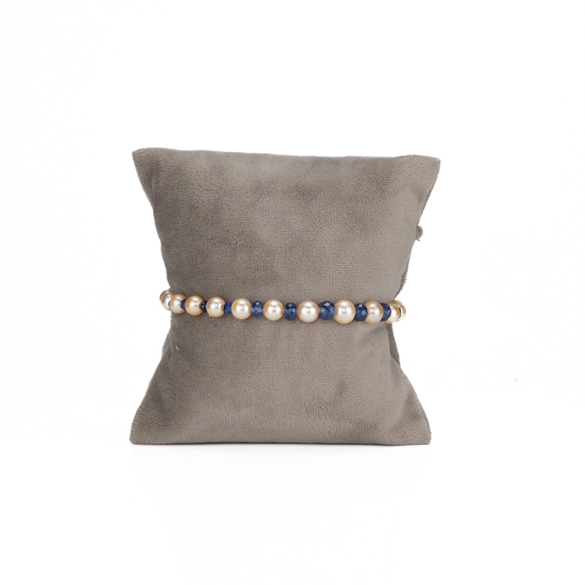 5.0-6.0mm Natural Sapphire And Golden Akoya Saltwater Pearl Bracelet - AA Quality