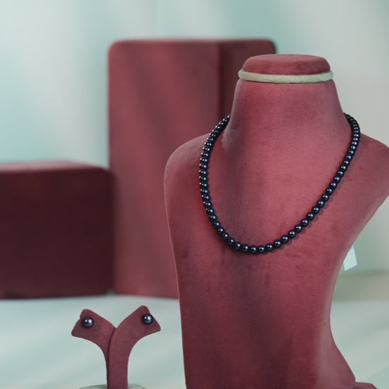6.0-7.0mm Round Black Freshwater Pearl Necklace Set - A Quality