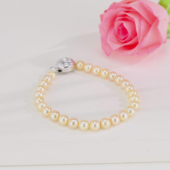 6.0-7.0mm Round Golden Akoya Saltwater Pearl Bracelet - AAA Quality