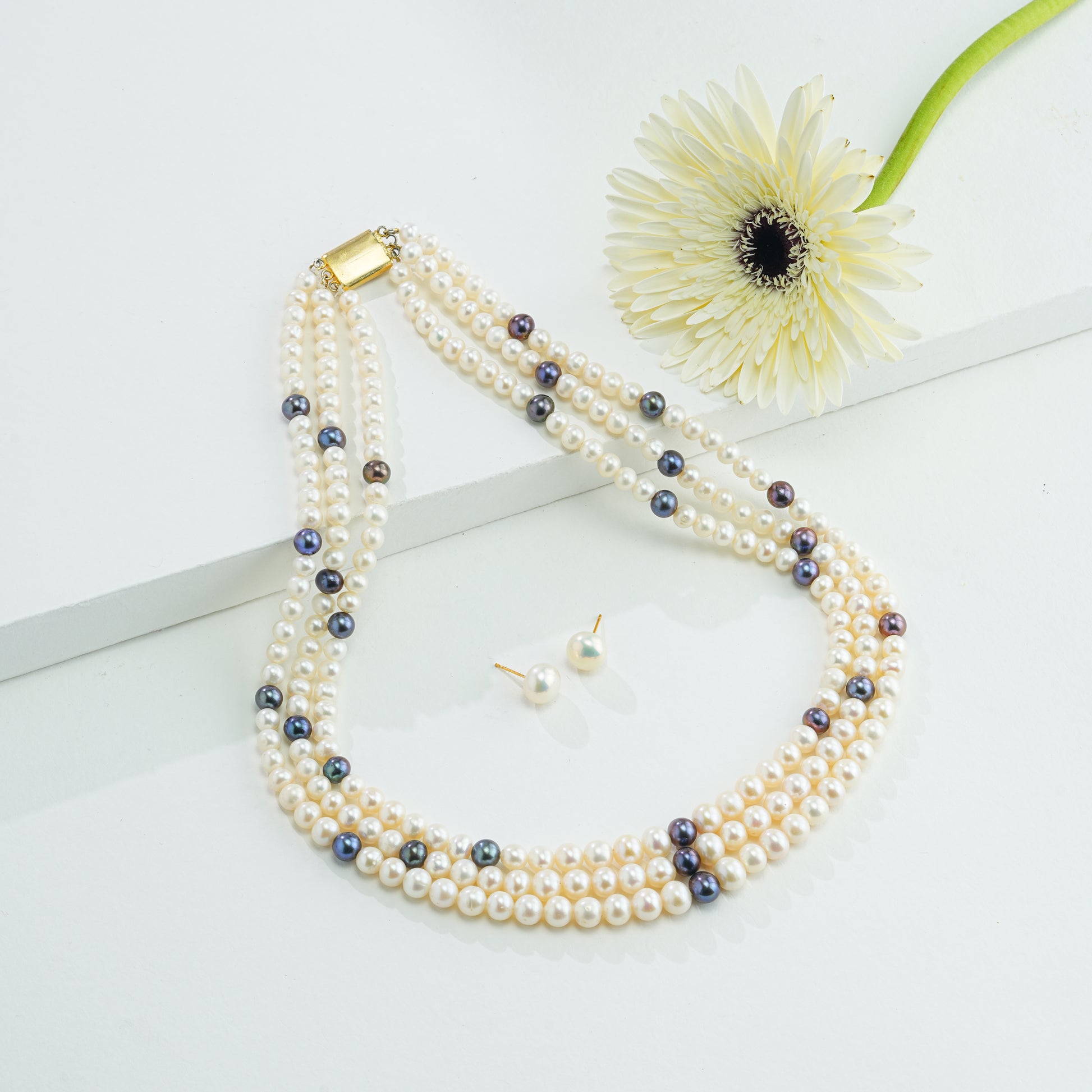 6.0-7.0mm Near Round Multicolor Freshwater Pearl Necklace Set - A Quality