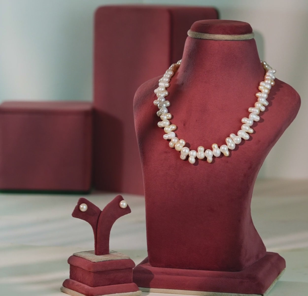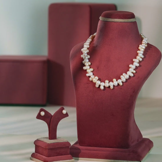 Add a touch of refined charm with the necklace, featuring freshwater cultured pearls in a distinctive mix Twins Multicolor shape. These elegant white pearls, sized 6–7mm and rated A-grade, are strung in a single 18-inch row, offering a delicate yet luxurious look. With an approximate weight of 69 grams, this necklace is backed by a life-long guarantee on pearls, ensuring enduring beauty and value.