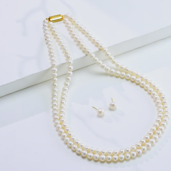 6.0-7.0mm White Near Round Freshwater Pearl Necklace Set - AA Quality