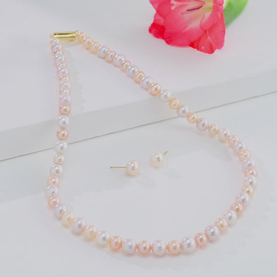 7.0-8.0mm Multicolor Near Round Freshwater Pearl Necklace Set- AA Quality