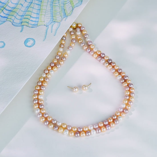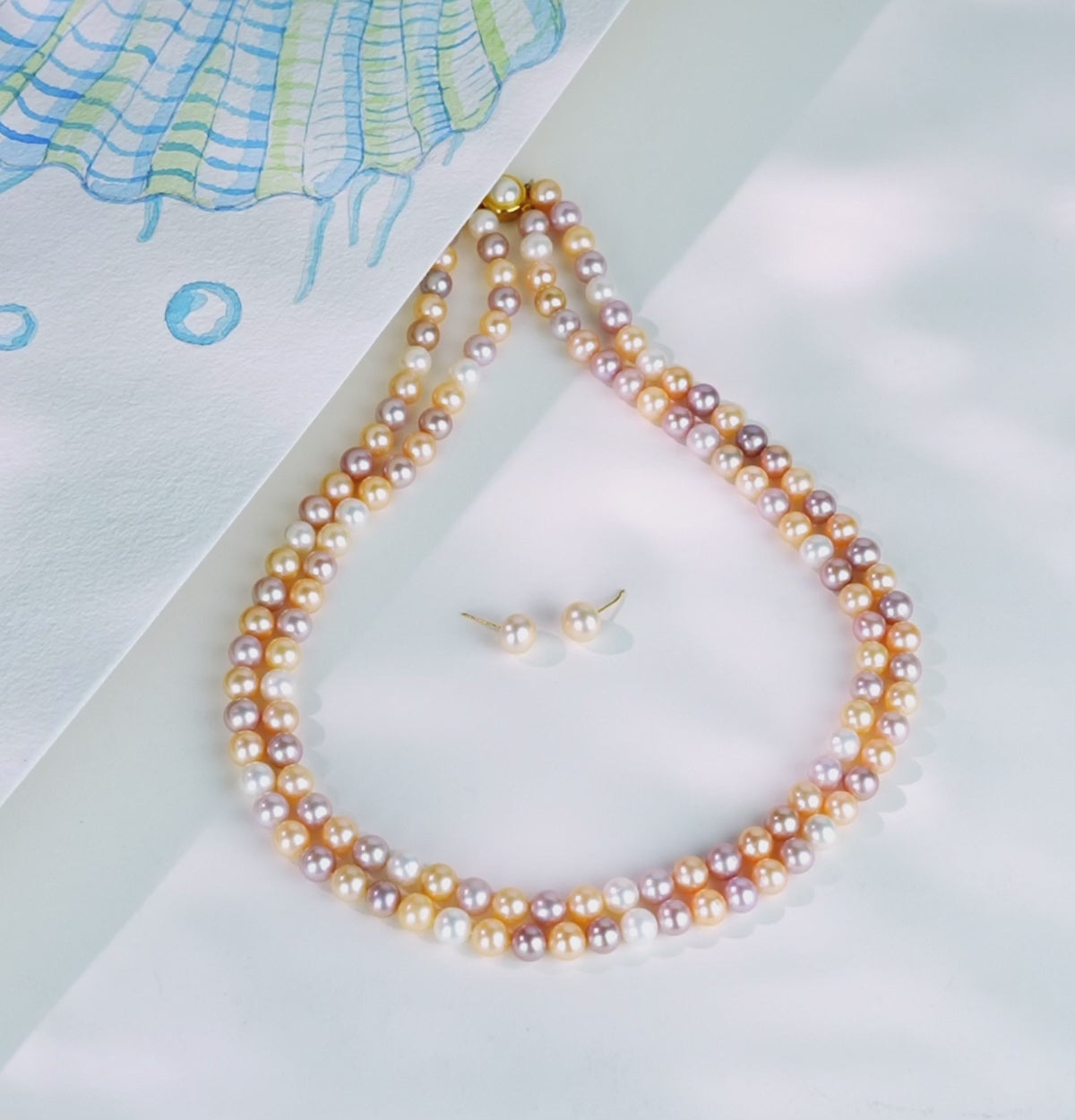 7.0-8.0mm Multicolor Round Freshwater Pearl Necklace Set - AAA Quality