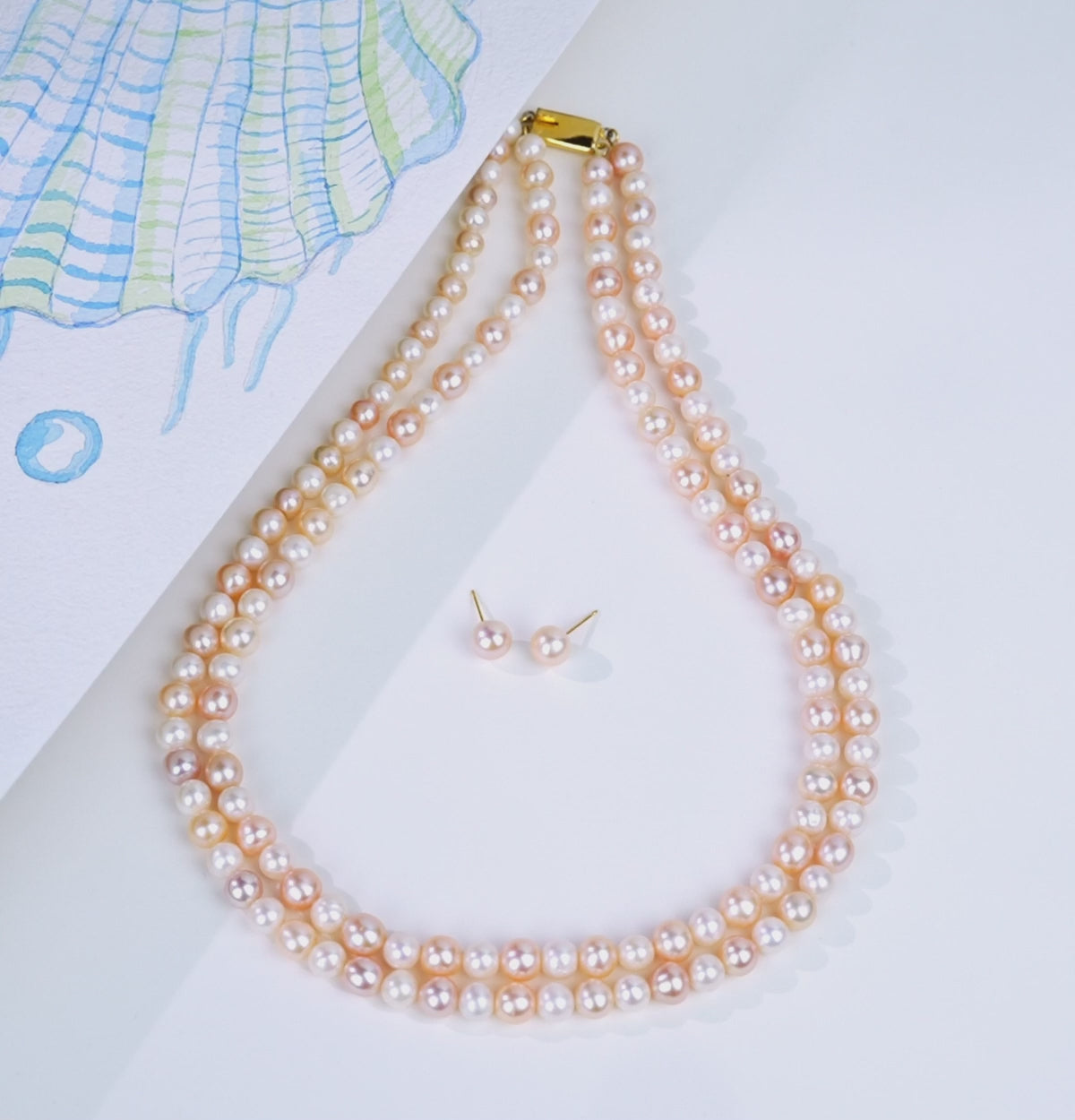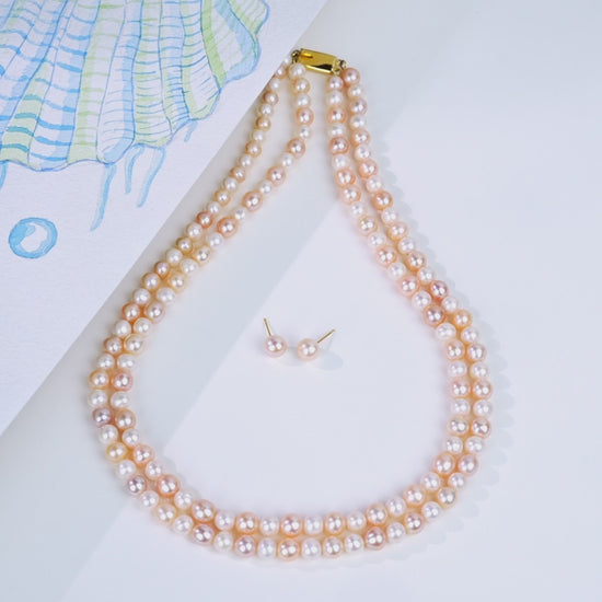 7.0-8.0mm Round Multicolor Freshwater Pearl Necklace Set - A Quality