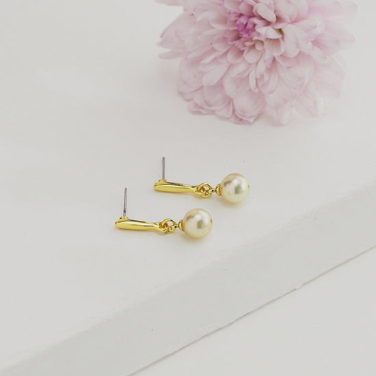 7.0-8.0mm Golden Round Saltwater South Sea Pearl Hanging Earrings