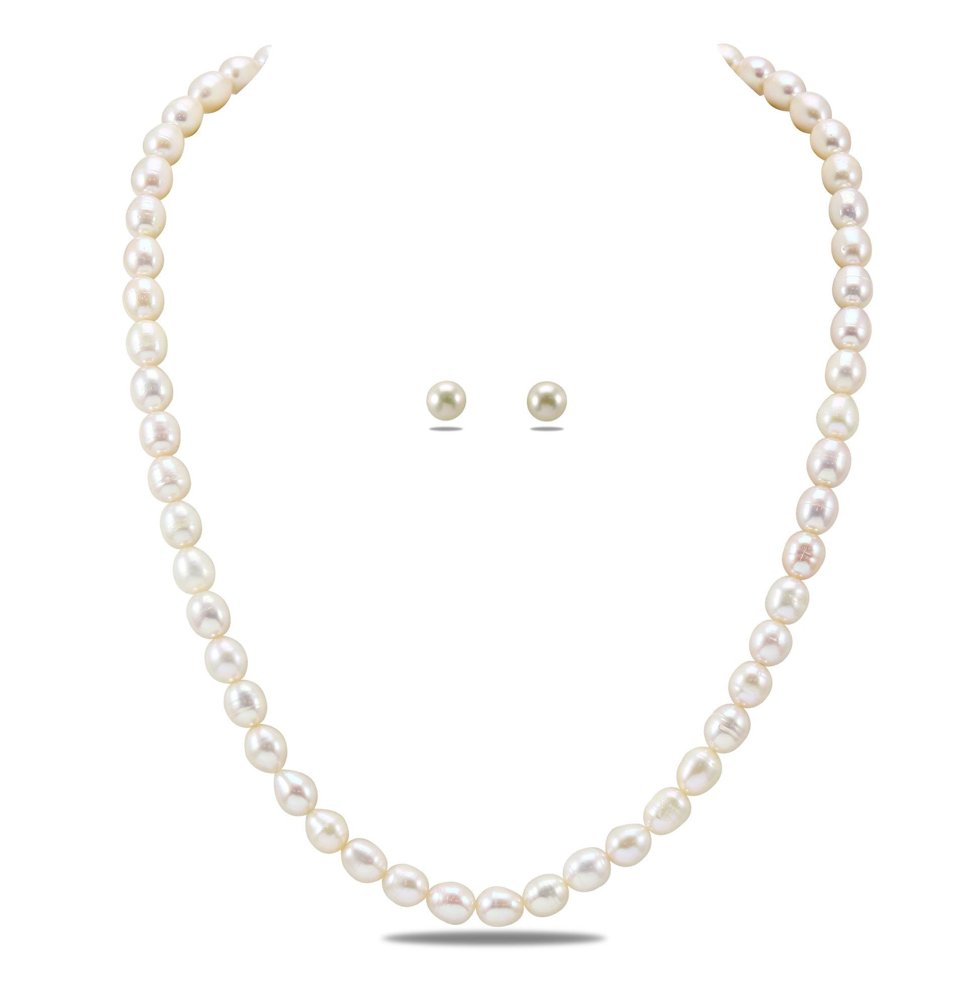 7.0-8.0mm White Drop Freshwater Pearl Necklace Set - A Quality