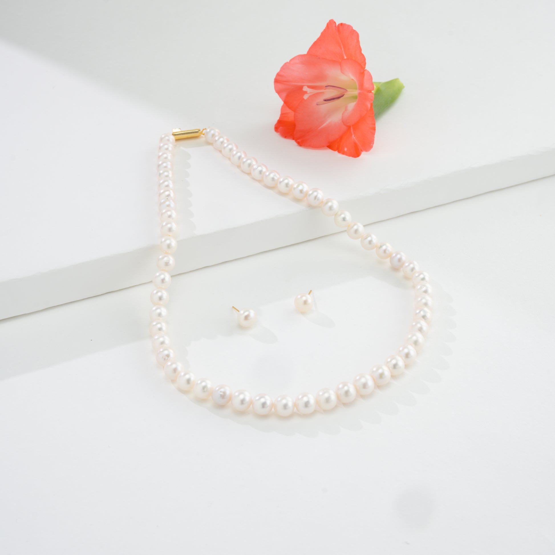 8.0-9.0mm White Near Round Freshwater Pearl Necklace Set - AA Quality