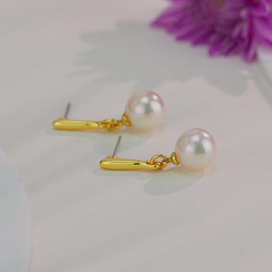 9.0-10.0mm White Round Akoya Saltwater Pearl Hanging Earring