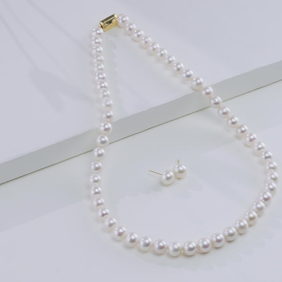 9.0-10.0mm White Round Freshwater Pearl Necklace Set - AAA Quality