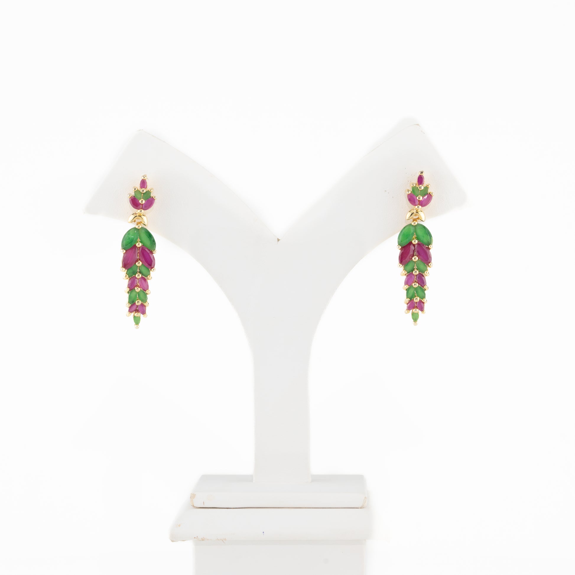 Elevate your style with the earrings, crafted with A-grade pearls and adorned with vibrant red and green stones. These earrings offer a striking fusion of classic elegance and festive charm. The high-quality pearls exude sophistication, while the bold stone colors add a lively, traditional flair. Designed to complement both grace and celebration, they are perfect for weddings, festivals, and cultural events. Pair them effortlessly with sarees, lehengas, or other ethnic ensembles to add a radiant finishing touch to your look.