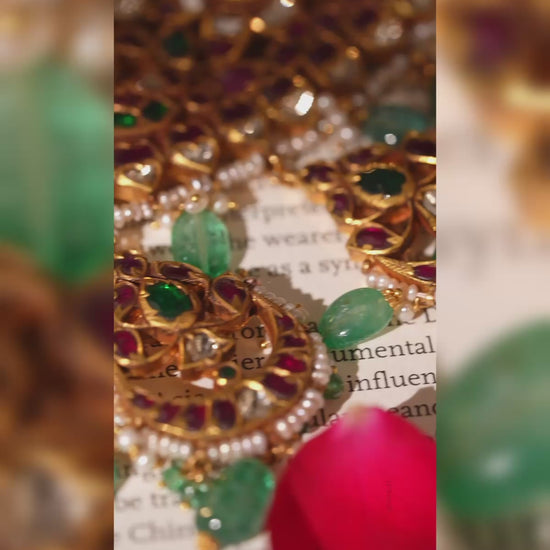 Enquire Now On WhatsAppAdd a touch of vibrant elegance with our Adorable Ruby Emerald Kundan Choker. Featuring a stunning combination of rich ruby and emerald stones set in intricate Kundan craftsmanship, this choker exudes charm and sophistication. The delicate gold-toned framework enhances the brilliance of the gemstones, making it a perfect blend of tradition and contemporary style. Lightweight yet striking, it ensures comfort without compromising on glamour.