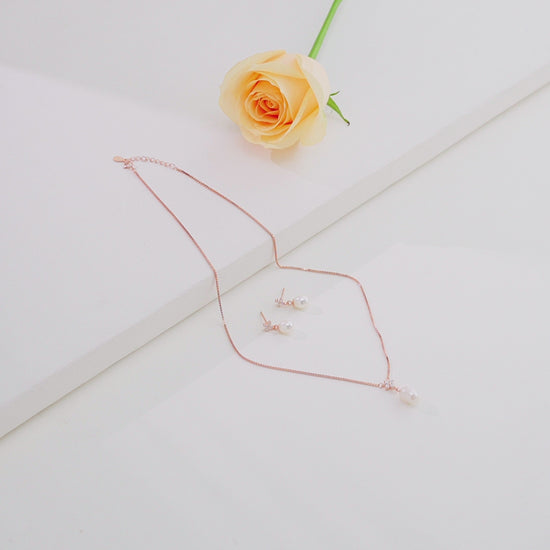 Stylish Rose Gold Silver Freshwater Pearl Necklace Set
