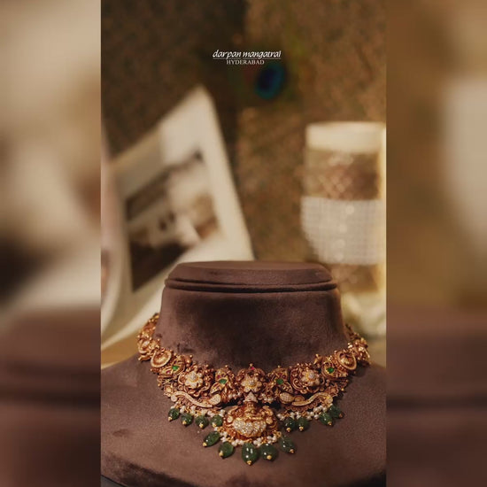 Enquire Now On WhatsAppElevate your elegance with our Charming Emerald Gold Choker, a stunning blend of luxury and craftsmanship. Featuring vibrant emerald stones set in an intricately designed gold-toned framework, this choker radiates timeless beauty and sophistication. Each gem is carefully placed to catch the light, creating a captivating sparkle that enhances any outfit. Lightweight and comfortable, it balances grandeur with wearability, making it a must-have addition to your jewelry collection.