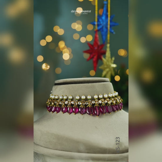 Enquire Now On WhatsAppAdd a touch of sophistication with our Charming Tourmaline Gold Necklace, a stunning blend of elegance and craftsmanship. Featuring vibrant tourmaline gemstones meticulously set in a rich gold framework, this necklace exudes timeless charm and luxurious appeal. Each stone reflects light beautifully, creating a mesmerizing sparkle that enhances the wearer’s grace. Lightweight and comfortable, it balances grandeur with ease, making it a versatile and statement-making piece.