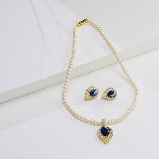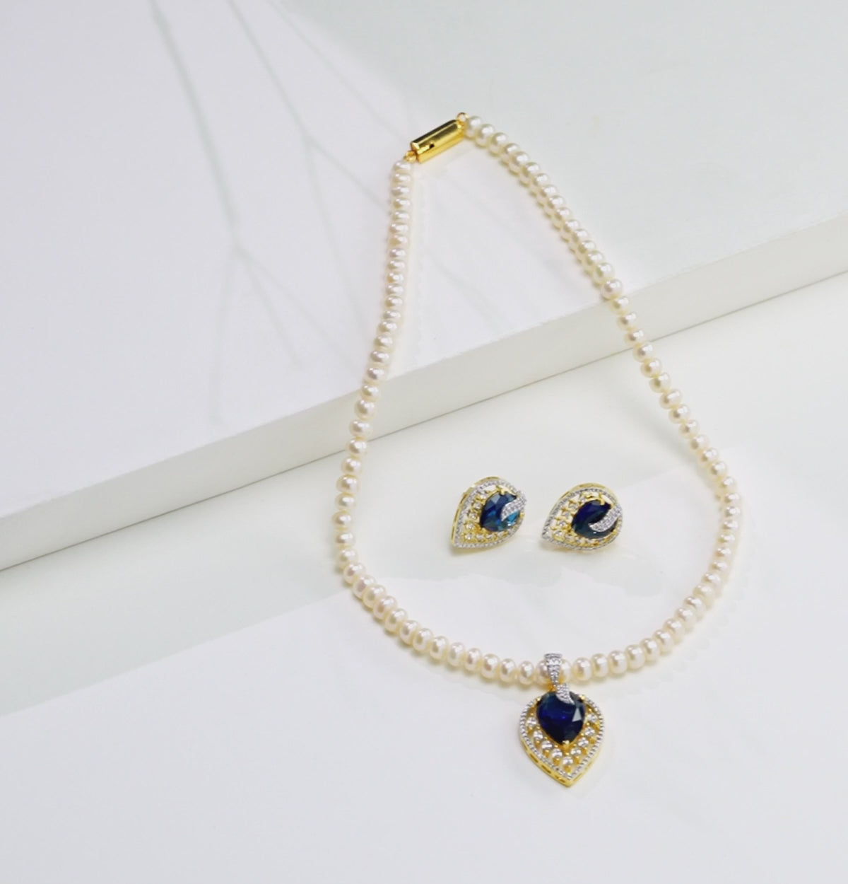 Clustered Blue Stone Freshwater Pearls Necklace Set