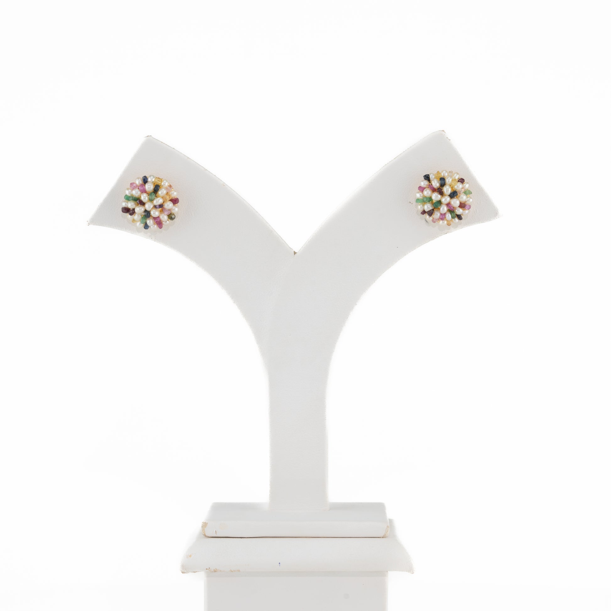 Brighten your look with our Multicolor Stud Earrings, designed to add a vibrant pop of color to your jewelry collection. Featuring a dazzling array of hues in a cut-faceted finish, these studs bring playful elegance and bold charm to any outfit. Crafted with precision and backed by our commitment to quality, they’re a perfect blend of contemporary style and timeless appeal. Whether you're dressing up for a festive celebration, a casual outing, or a formal event, these multicolor studs add flair to ethnic wear, western outfits, and everything in between. A must-have for versatile styling.