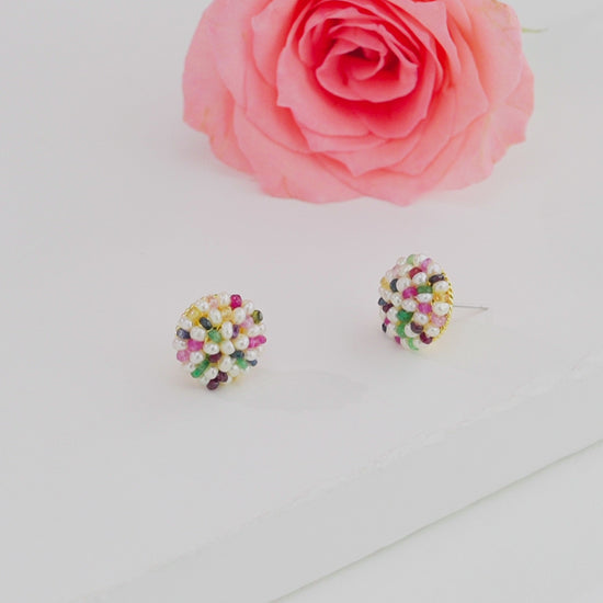 Colorful Multi Color Seed Freshwater Pearl Stud