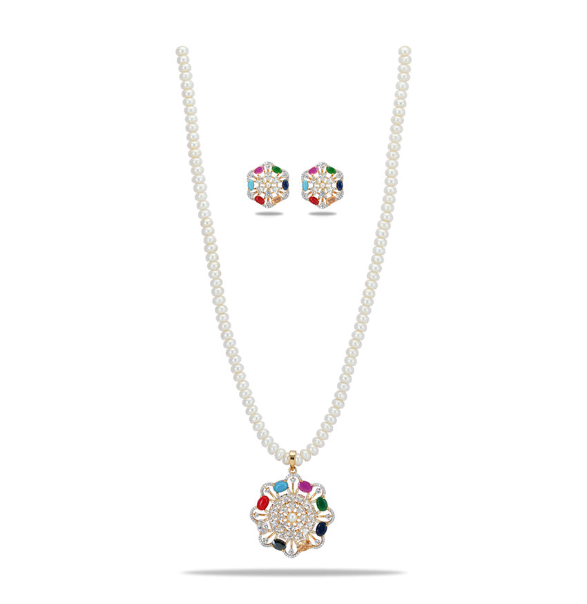 Dainty Navratna Multicolor Freshwater Pearl Necklace Set