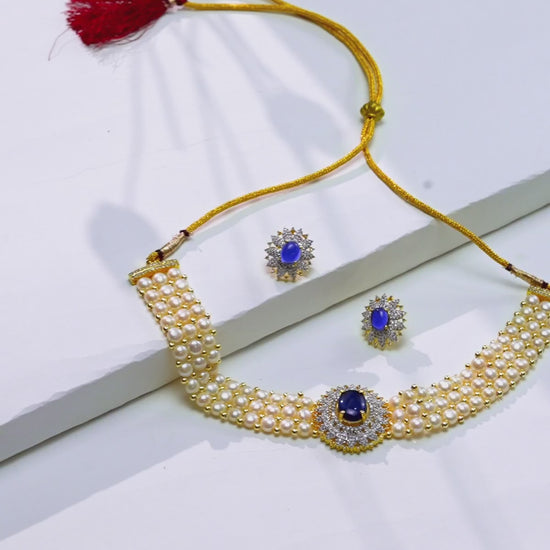 Designer Dark Blue Stone Freshwater Pearl Choker Set