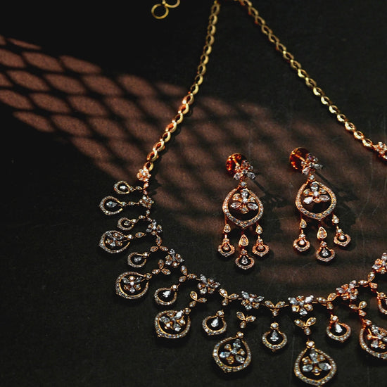 Enquire Now On WhatsAppThe Ethical Diamond Necklace Set is a stunning creation that combines luxury with responsibility. Expertly crafted using ethically sourced diamonds, this set includes a radiant necklace paired with matching earrings, reflecting timeless elegance and refined craftsmanship. Each diamond is carefully selected for its brilliance, ensuring beauty that shines with integrity. Perfect for women who value both sophistication and sustainability, this set makes a meaningful addition to any jewelry collection. Ideal for weddings, festive occasions, or elegant evenings, it enhances both traditional attire and contemporary outfits, allowing you to shine with grace, style, and conscious luxury.