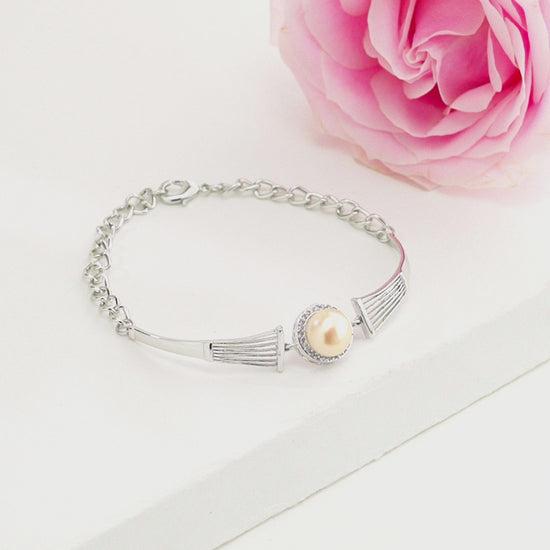 This stunning bracelet showcases freshwater cultured pearls in a soft, elegant pink hue. The button-shaped pearls sized 9–10 MM are strung in a single-row design with a length of 7 inches, offering a comfortable and graceful fit. Graded A quality, these pearls radiate natural luster and beauty, making the bracelet a timeless addition to any jewelry collection. Backed by a life-long guarantee, it is an exquisite piece to complement festive attire, wedding ensembles, or even add a refined charm to your modern evening wear.