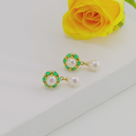 Fashionable Green Stone Freshwater Pearl Stud Earrings