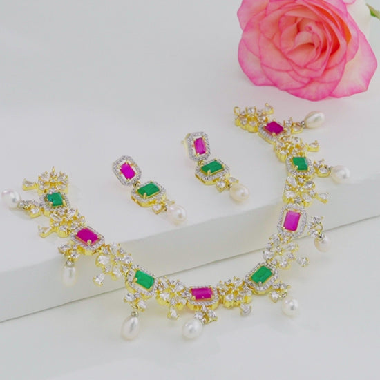 Feminine Drop Red Green Multicolor Freshwater Pearls Choker Set