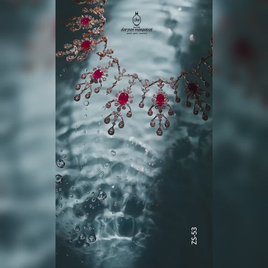 Enquire Now On WhatsAppThe Glittering Ruby Diamond Necklace is a stunning masterpiece that blends the fiery allure of rubies with the timeless sparkle of diamonds. Crafted with precision, this necklace showcases radiant rubies elegantly set amidst dazzling diamonds, creating a striking balance of color and brilliance. Its rich design and luxurious finish make it a must-have for those who love sophistication with a touch of vibrance. A true statement of grandeur, this necklace is perfect for weddings, festive occasions, and evening gatherings, complementing both traditional attire and modern ensembles with effortless charm and elegance.
