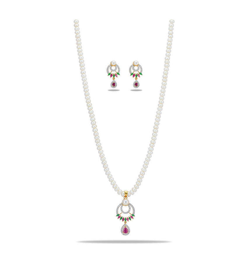 Elevate your elegance with this exquisite single pendant necklace crafted from premium A-grade freshwater cultured pearls. Featuring a classic button shape in radiant white, each 4-5mm pearl is delicately strung on a 16-inch strand. Accented with a vibrant multicolor stone, this piece perfectly blends timeless charm with a modern twist. Guaranteed for life, this necklace promises enduring beauty and quality. Ideal for both casual and formal settings, it complements ethnic and contemporary outfits alike—making it a versatile addition to your jewelry collection for weddings, celebrations, or everyday sophistication.