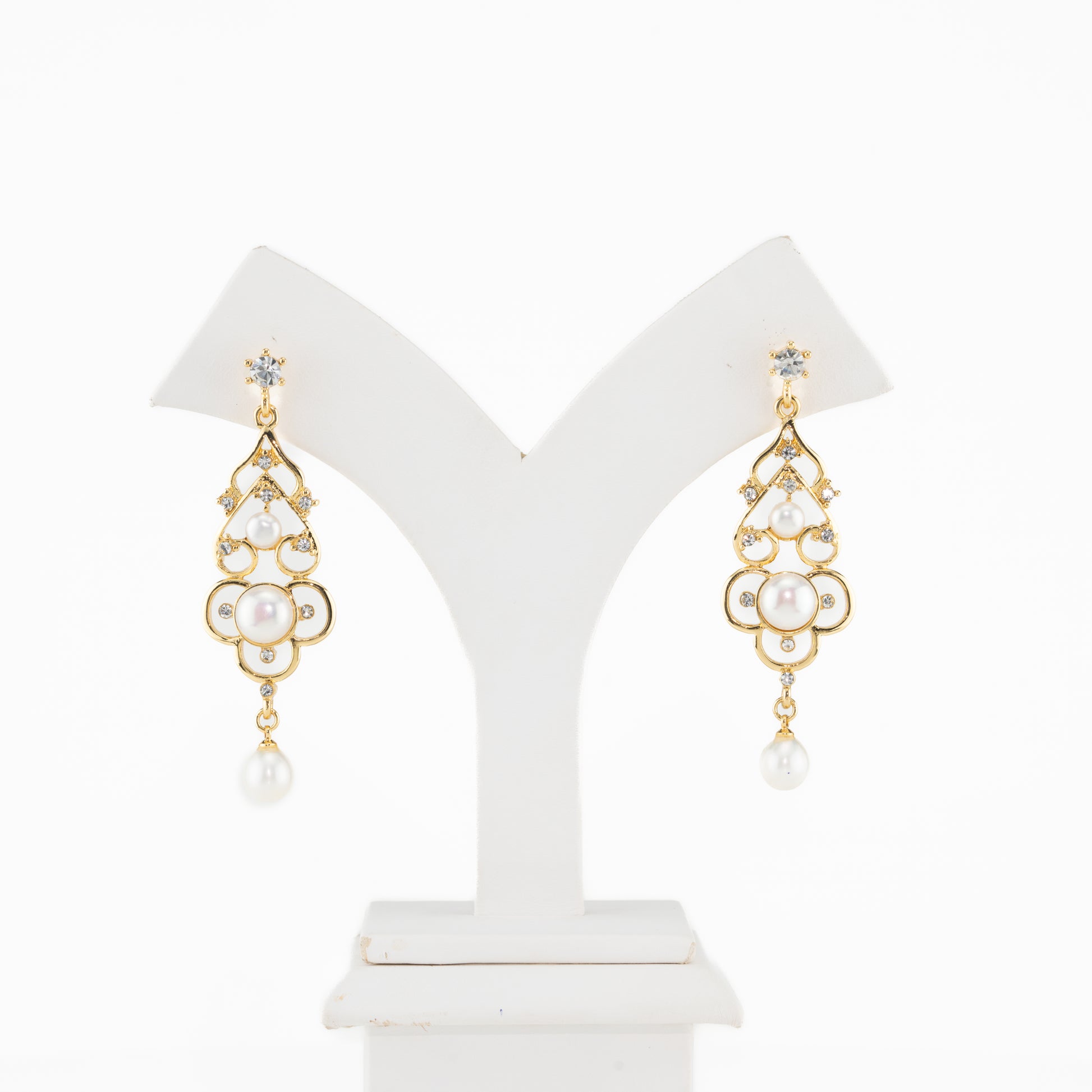 Graceful Mix Fancy Earrings, crafted with Freshwater Cultured Pearls, bring a timeless charm to your collection. Featuring 8-9 MM mix-shaped pearls in pristine white, these earrings reflect elegance and grace. With A-quality pearls and a life-long guarantee, they ensure lasting beauty and value. Their versatile design makes them an ideal choice for both everyday wear and special occasions, complementing ethnic outfits as beautifully as modern attire. Perfect for weddings, festive gatherings, or adding a refined touch to your formal look.