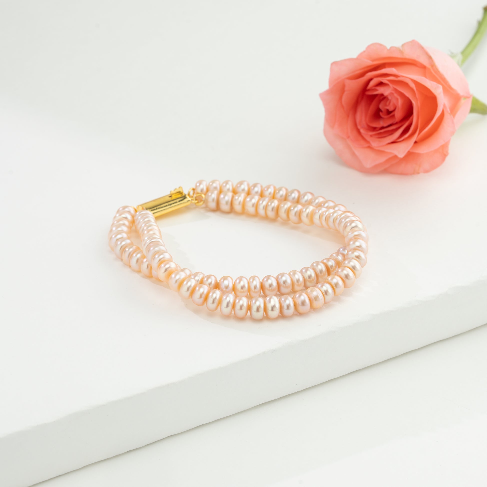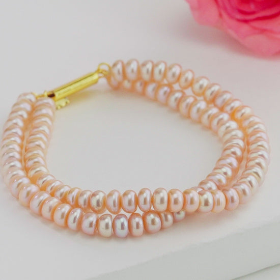 Graceful and charming, the Pink Button Freshwater Pearl Bracelet features 4-5MM pearls in a soft, elegant pink hue. Expertly crafted from genuine Freshwater Cultured Pearls, each pearl is graded A for its natural beauty and gentle luster. The double-row design, measuring 7 inches, adds fullness and sophistication while ensuring a comfortable fit. Backed by a Life Long Guarantee on Pearls, it is a timeless piece made to last. Perfect for weddings, festive gatherings, or enhancing everyday outfits, this bracelet complements both traditional and western attire with a refined, feminine touch.