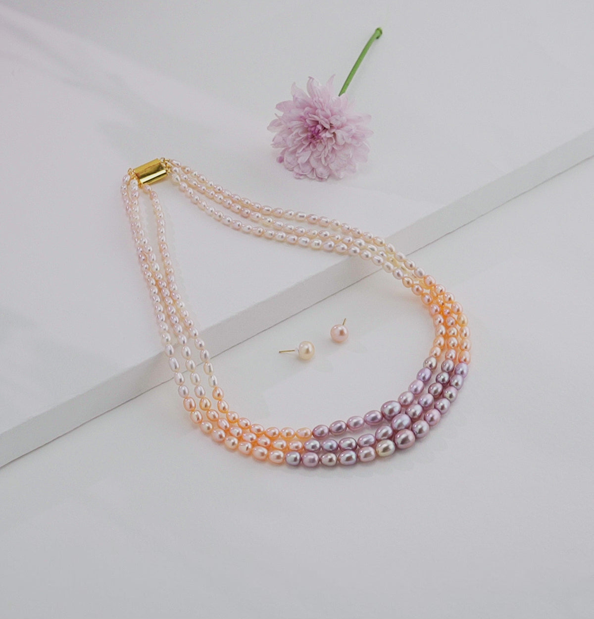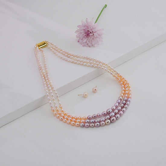 Grading Drop Rainbow Freshwater Pearl Necklace Set - AAA Quality