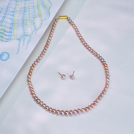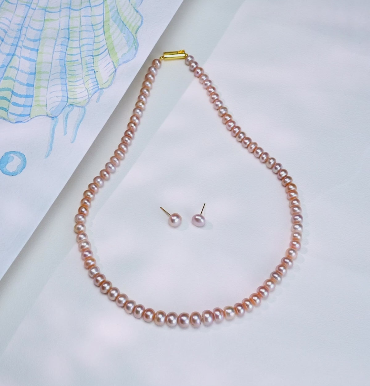 Grading Pink Button Freshwater Pearl Necklace Set - A Quality