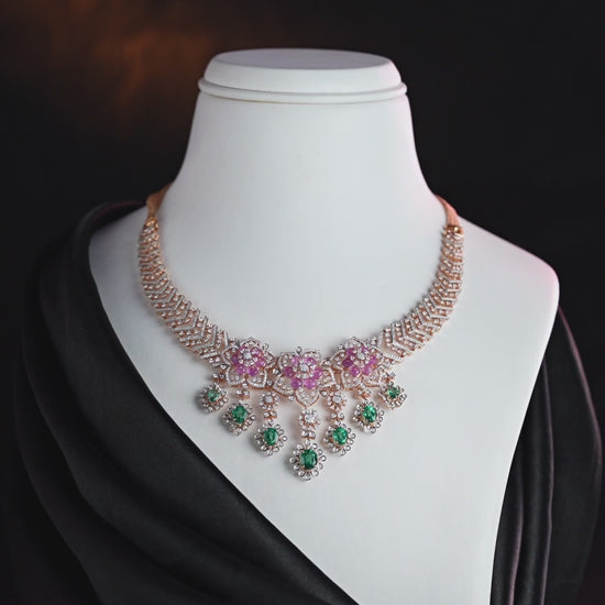 Enquire Now On WhatsAppThe Lavish Diamond Necklace is a true embodiment of luxury and grandeur, designed to captivate with its radiant brilliance. Expertly crafted, each diamond is set with precision, creating a breathtaking sparkle that reflects timeless elegance. Its refined design ensures it rests gracefully on the neckline, making it a perfect centerpiece for any occasion. A symbol of sophistication and charm, this necklace adds unmatched opulence to your jewelry collection. Ideal for weddings, festive celebrations, and glamorous evenings, it pairs beautifully with both traditional and modern attire, ensuring you shine with grace and confidence wherever you go.