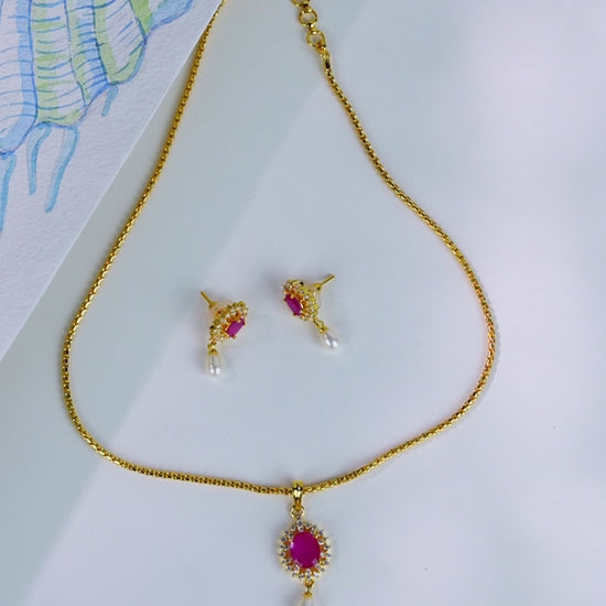 Luminous Red Color Stone Freshwater Pearl Necklace Set
