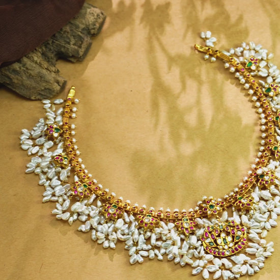 Enquire Now On WhatsAppExperience the fusion of tradition and contemporary style with our Modernist Kundan Guttapusalu Necklace Set. This stunning piece reinterprets the classic Guttapusalu design with a sleek, modern aesthetic. It features intricate Kundan work that radiates timeless elegance, paired with a delicate beaded necklace for a sophisticated look. Each detail is meticulously crafted to create a piece that is both luxurious and lightweight, ensuring comfortable wear. This versatile set is perfect for elevating your look for weddings, festive occasions, and special events, pairing beautifully with both traditional sarees and contemporary Indo-western outfits.