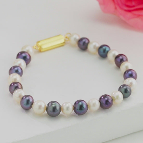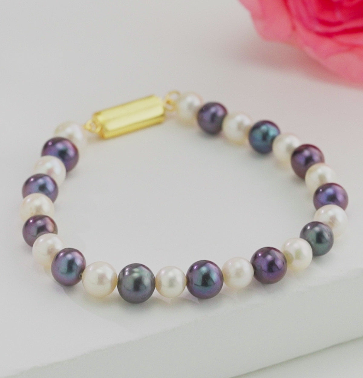 Colorful and charming, the Multicolor Near Round Freshwater Pearl Bracelet features 6-7MM pearls in a beautiful mix of natural hues. Crafted from genuine Freshwater Cultured Pearls and graded A for their organic beauty, this single-row bracelet measures 7 inches, offering a perfect fit and timeless appeal. Each pearl showcases its unique luster, making every piece one-of-a-kind. Backed by a Life Long Guarantee on Pearls, it ensures lasting elegance. Ideal for festive celebrations, casual wear, or pairing with both ethnic and western outfits, adding a vibrant and graceful touch to your style.